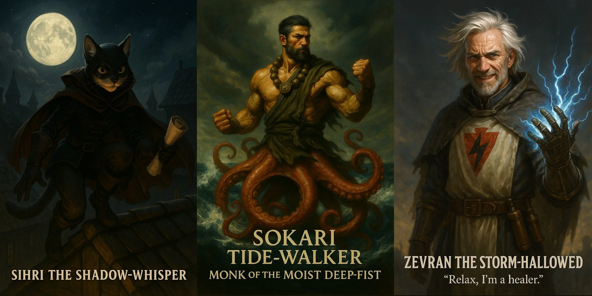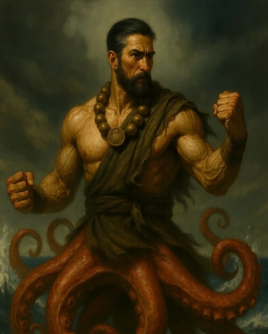 Sokari Tide-Walker was born to a Cecaelian clan that roamed the Arcadian depths, a child of tide and storm. A monster off Cape Kraken shattered his world, dragging his family into the deep and leaving him orphaned on the waves until the monk Rick “Tricky Ricky” Valspar pulled him from the sea. Forged in Ostenso’s pits and tempered by grief, Sokari walks the land with the quiet strength of something shaped by the ocean’s ancient will. Drawn toward Whisperwood by the promise of a new temple site—and whispers of a relic tied to his bloodline—he follows the currents of fate as if answering a call older than memory.